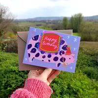 This little piggy went to party! 🐷🎉 This greetings card features an illustrated gloucestershire old spot pig who has donned it's party hat and is ready for some fun birthday celebrations!